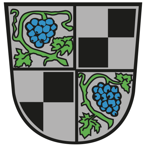 Geviert; 1 und 4: in Silber eine blaue Traube mit beblättertem grünem Stiel; 2 und 3: geviert von Silber und Schwarz.